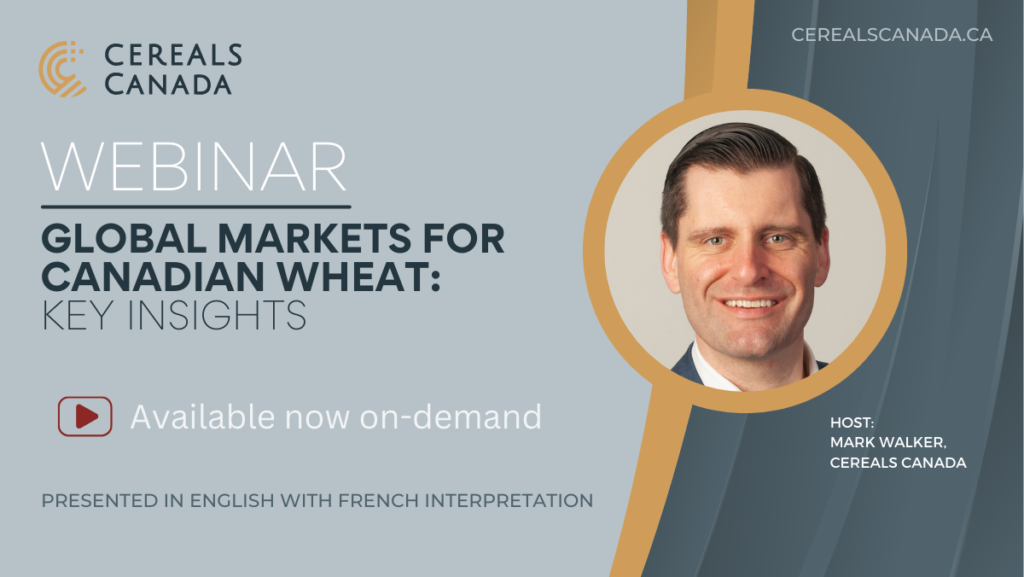 Hosted by Mark Walker, vice president of markets and trade, this 60-minute webinar highlights our team’s market development activities in six key markets. Mark is joined by Cereals Canada experts who share their outreach experiences and provide insights on what global customers want and demand when purchasing CWRS, CWAD, CPSR, and CESRW.