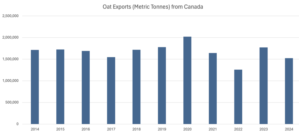 Canadian Oat Production and Exports